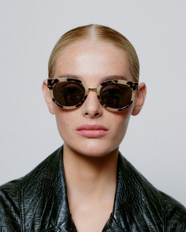 JOLIE is a feminine oversized model with a strong and energetic vibe. The frame is round with large lenses and is tied together by an elegant metal bridge. The design is inspired by French femininity, elegance, and extravagance.