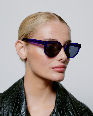 JOLIE is a feminine oversized model with a strong and energetic vibe. The frame is round with large lenses and is tied together by an elegant metal bridge. The design is inspired by French femininity, elegance, and extravagance.