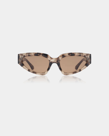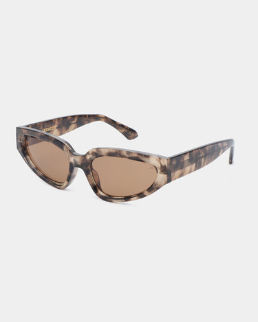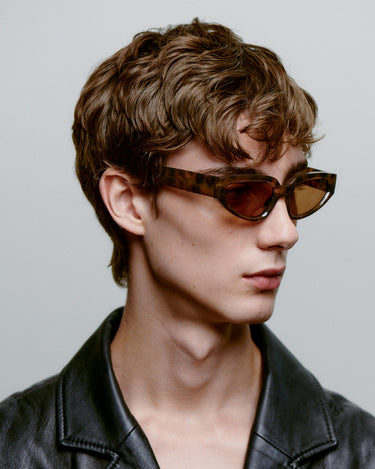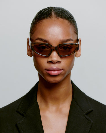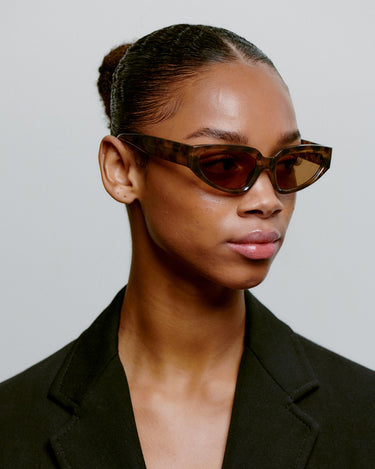 A slightly larger, classic yet trendy pair with narrow oval cateye lenses in an upright, robust frame with wide temples that together create a strong yet feminine look.