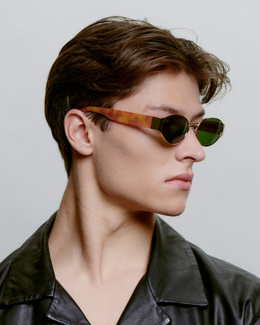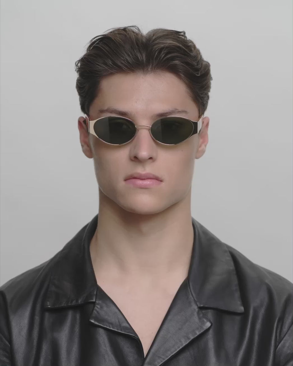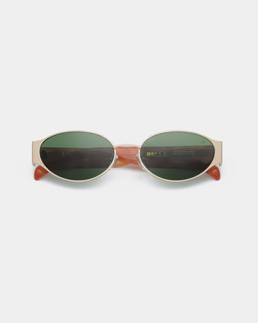 Bella - Gold Burnt Amber is a compact sunglass with oval 90's attitude and a slight cat-eye interpretation that gives a feminine, sharp look in a small format. It's perfect if you want sunglasses that feel fashionable but still clean and easy to wear. Bella does a lot with a little - and works both as an everyday detail and as a statement.