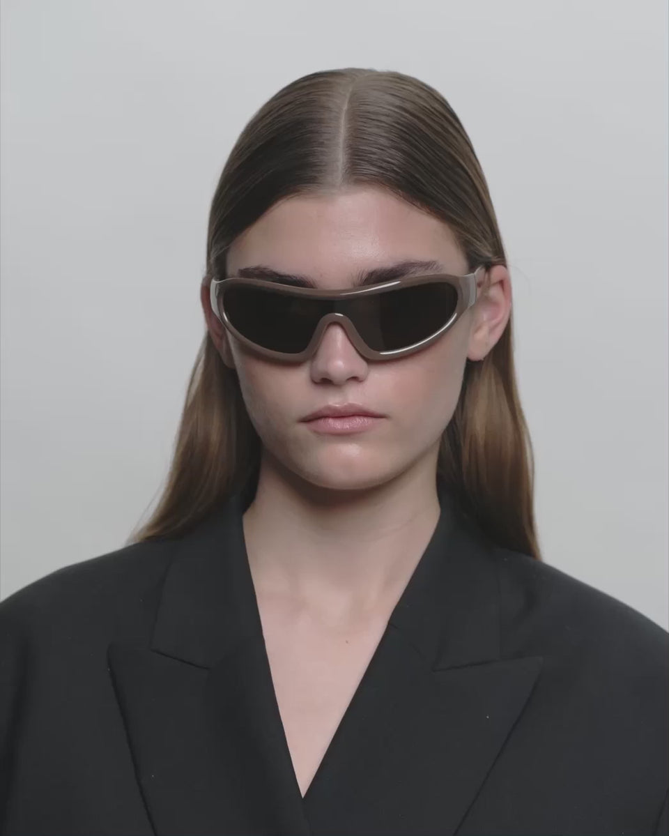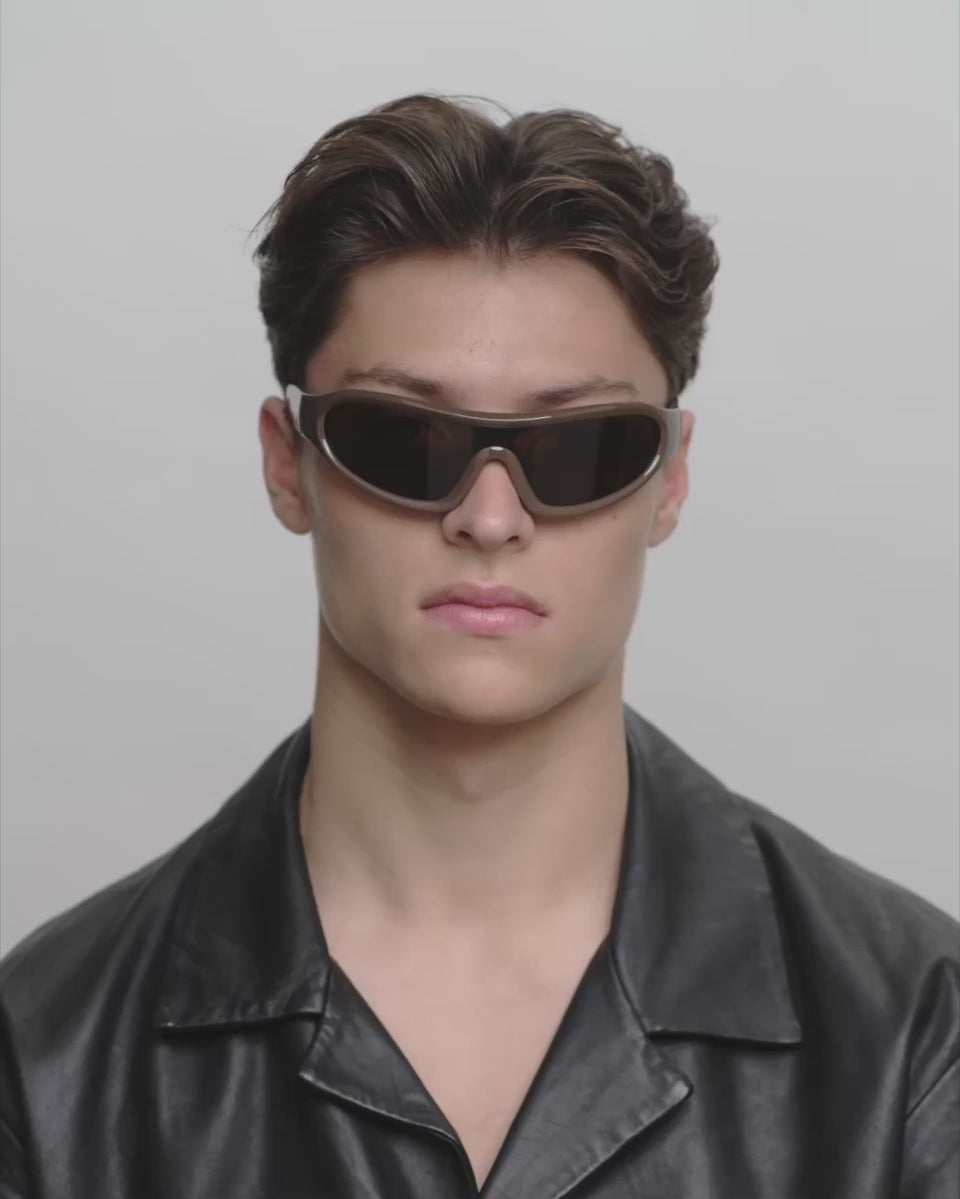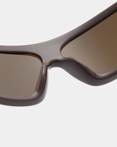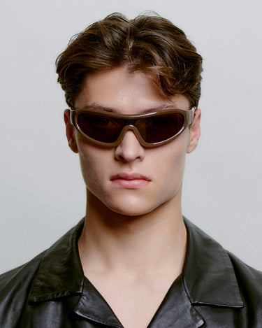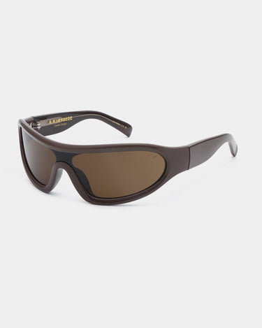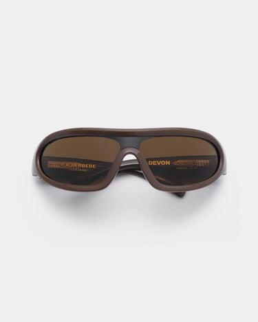 Devon - Chocolate is a distinctive wraparound model with a sporty retro look. The curved design follows the face and combines fashion and function. A statement sunglass for active days and an urban everyday look.