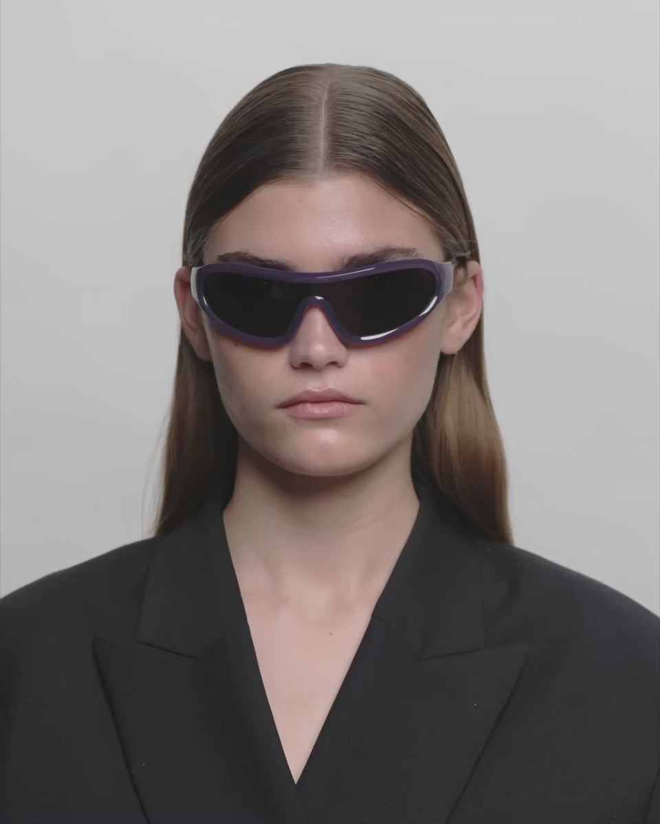 Devon - Shadow is a distinctive wraparound model with a sporty retro look. The curved design follows the face and combines fashion and function. A statement sunglass for active days and an urban everyday look.