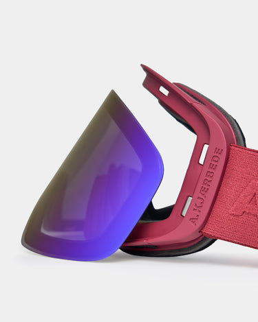 Enry - Boysenberry is A.Kjærbede's ski and snowboard goggle created for those who want a clean, minimalist look - but with features that deliver on-piste and off-piste. Here you get a goggle where visibility, comfort and quick adjustment are key: anti-fog for clarity, UV400 for protection and a REVO coating that helps differentiate snow and ice in changing conditions.