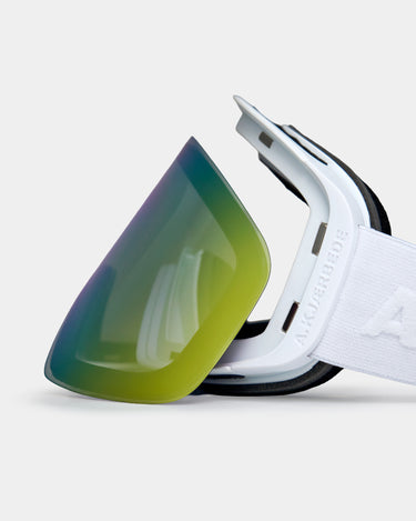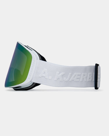 Enry - Snow White is A.Kjærbede's ski and snowboard goggle created for those who want a clean, minimalist look - but with features that deliver on-piste and off-piste. Here you get a ski goggle where visibility, comfort and quick adjustment are key: anti-fog for clarity, UV400 for protection and a REVO coating that helps differentiate snow and ice in changing conditions.