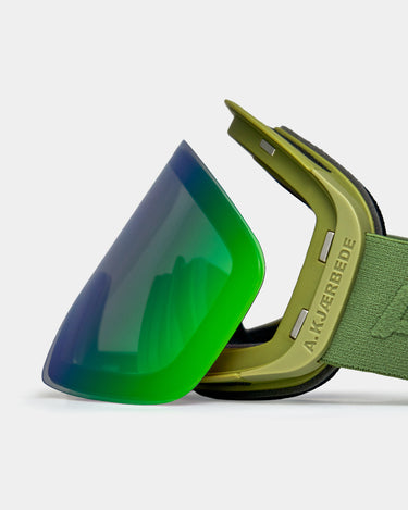 Enry - Speed Green is A.Kjærbede's ski and snowboard goggle created for those who want a clean, minimalist look - but with features that deliver on-piste and off-piste. Here you get a goggle where visibility, comfort and quick adjustment are key: anti-fog for clarity, UV400 for protection and a REVO coating that helps differentiate snow and ice in changing conditions.