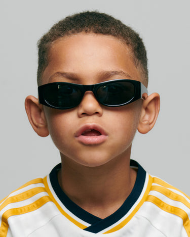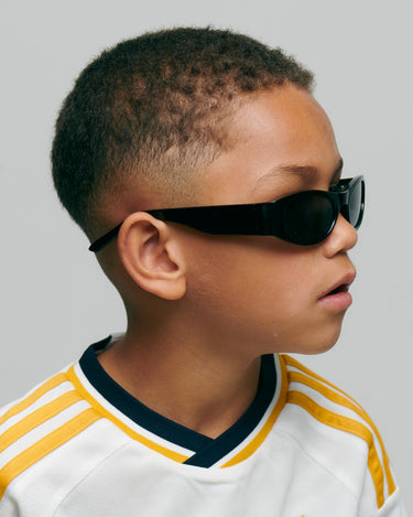 Our junior sunglasses are designed for children aged 6 - 12 years. All our glasses are made from BPA-free and nickel-free materials to avoid allergies. Gust Junior is a narrow 90’s inspired sunglasses with attitude. – UV 400 Protection – Polycarbonate lenses – High-quality optical hinges – Cleaning pouch included – Adjustable temples, with metal core – BPA-Free – Eco-friendly material – More than 50% recycled materials Lens – 49 mm, bridge – 18 mm, temples – 122 mm