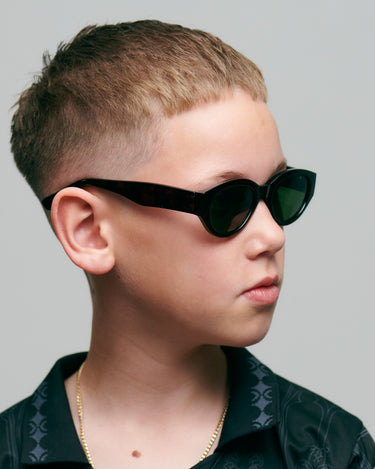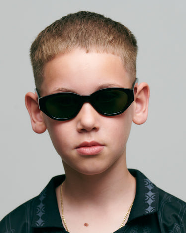 Our junior sunglasses are designed for children aged 6 - 12 years. All our glasses are made from BPA-free and nickel-free materials to avoid allergies. Winnie Junior is a modern classic inspired by Scandinavian fashion. – UV 400 Protection – Polycarbonate lenses – High-quality optical hinges – Cleaning pouch included – Adjustable temples with metal core – BPA-Free – Eco-friendly material – More than 50% recycled materials Lens – 47 mm, bridge – 19 mm, temples – 130 mm